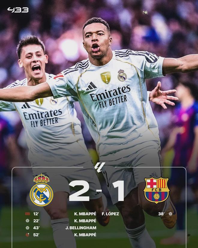 最終,皇馬在主場(chǎng)2-1擊敗巴薩,贏下本賽季的首場(chǎng)國(guó)家德比。