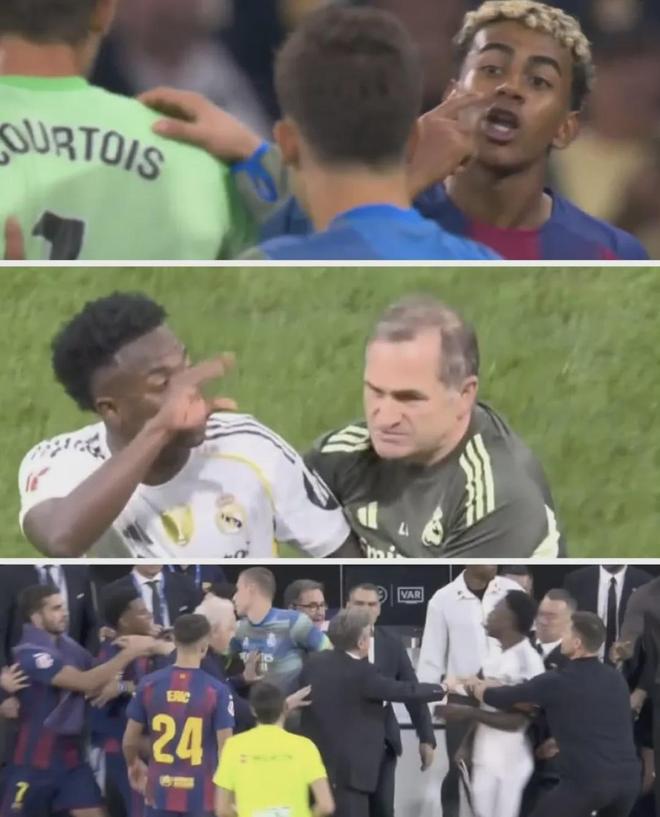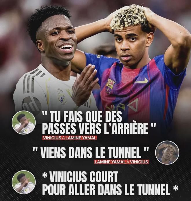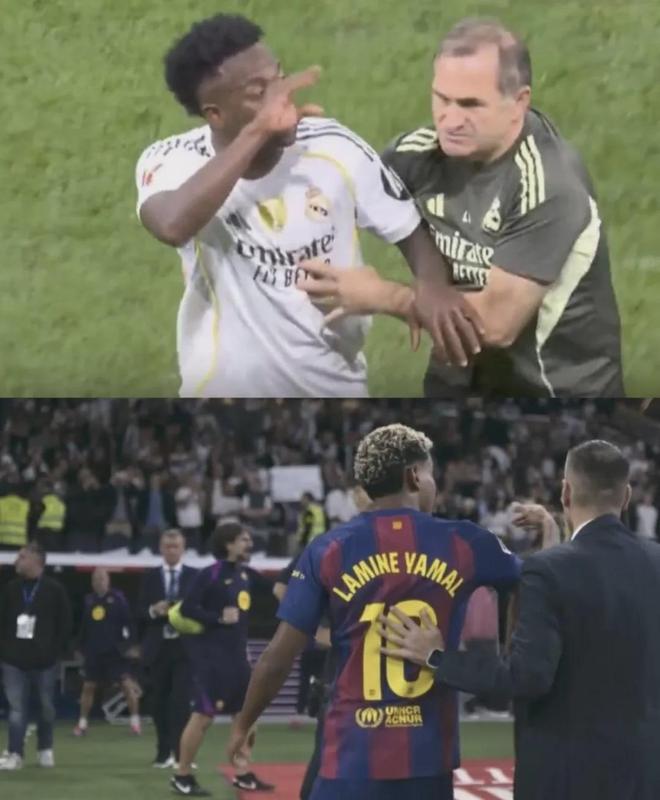 直到維尼修斯在回更衣室的路上和他迎面碰上,并做出一個(gè)嫌他話多的手勢(shì),亞馬爾便約維尼修斯去更衣室“較量”,維尼修斯則邊跑邊回應(yīng)并接受了挑戰(zhàn),但有人攔住了他。