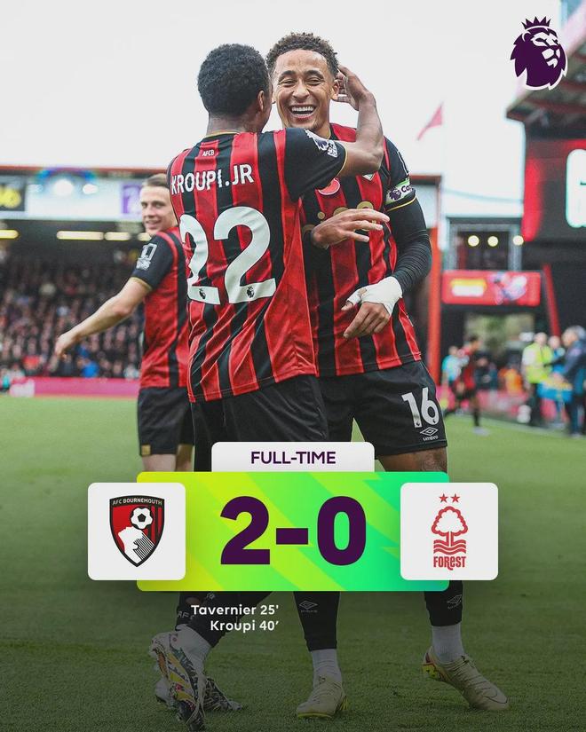 英超第9輪,伯恩茅斯主場(chǎng)迎戰(zhàn)諾丁漢森林。上半場(chǎng),塔韋尼耶角球直接破門,克魯皮遠(yuǎn)射破門,最終,伯恩茅斯在主場(chǎng)2球擊敗對(duì)手。